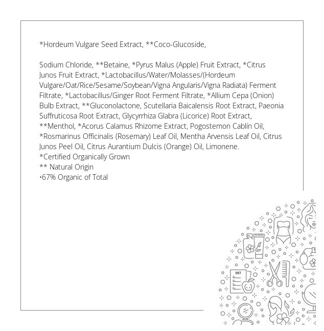 Odświeżający szampon przeznaczony do przetłuszczającej się skóry głowy który nie tylko delikatnie odświeża skórę głowy, złuszczając martwe komórki i kontrolując nadmiar sebum na skórze głowy, ale także skutecznie usuwa zanieczyszczenia oraz poprawia kondycja włosów i hamuje ich wypadanie. Zawiera ekstrakt z jabłka, olejek miętowy i mentol, które pomagają wyeliminować łupież i kontrolować wydzielanie olejków. Zawiera jęczmień, który wspomaga porost włosów i fasolę mung, aby odżywić i zagęścić włosy. Szampon zawiera także ryż i owies, aby ukoić i wzmocnić włosy dzięki czemu stają się zdrowe, czyste i błyszczące.