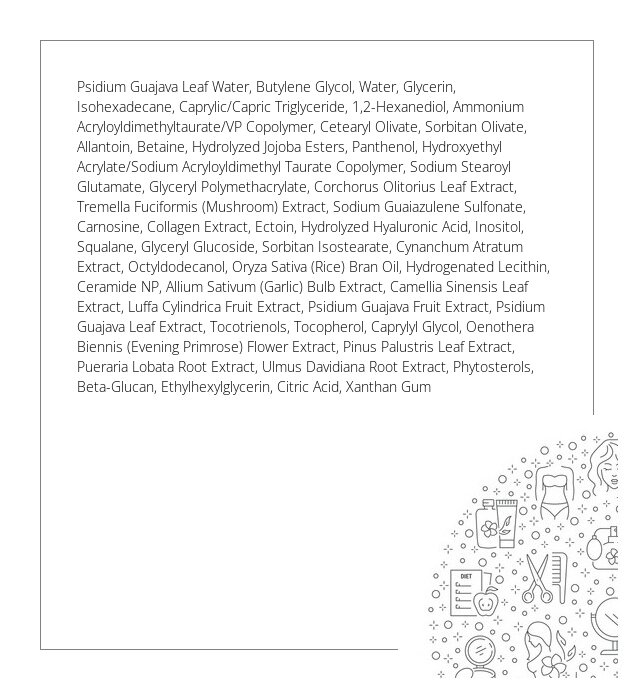 To zaawansowany krem o wegańskiej formule i zrównoważonym pH, zaprojektowany z myślą o regeneracji skóry wrażliwej i reaktywnej. Bazuje na synergii bioaktywnych składników – ekstraktu z owocu gujawy, bogatego w przeciwutleniacze i witaminę C, oraz azulenu, znanego z właściwości przeciwzapalnych i łagodzących. Kompleks nawilżający z pantenolem (prowitamina B5) oraz wielocząsteczkowym kwasem hialuronowym zapewnia długotrwałe wiązanie wody w naskórku oraz przyspiesza procesy regeneracyjne. Obecność Ceramidu NP wspiera odbudowę warstwy lipidowej, wzmacniając barierę hydrolipidową skóry i ograniczając transepidermalną utratę wody (TEWL). Hydrolizowany kolagen wspomaga poprawę elastyczności i sprężystości skóry. Jego żelowo-kremowa konsystencja o wysokiej gęstości umożliwia szybkie wchłanianie bez uczucia lepkości, co czyni go idealnym produktem do codziennej pielęgnacji skóry wymagającej.