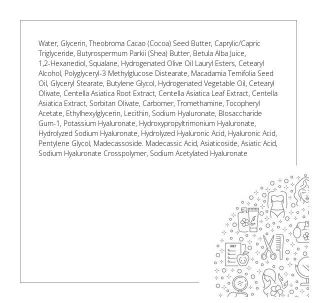 Wysoce skoncentrowany krem zawierający innowacyjny kompleks Cicaluronic, czyli połączenie kwasu hialuronowy z wąkrotą azjatycką oraz wiele innych naturalnych składników aktywnych. Krem wykazuje silne właściwości nawilżające oraz kojące, dobroczynnie wpływa na wszelkie podrażnienia, natychmiastowo przynosi ulgę oraz zapewnia długotrwałą ochronę przed wysuszeniem. Ponadto wąkrota azjatycka wykazuje właściwości przeciwzapalne oraz antybakteryjne, dzięki termu łagodzi stany zapalne i niedoskonałości oraz zmniejsza widoczność przebarwień i blizn. Skutecznie wygładza zmarszczki, a także poprawia elastyczność i jędrność skóry.