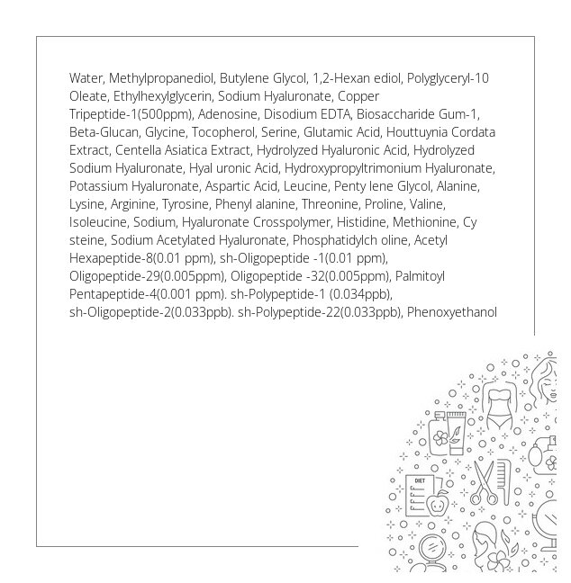 Skoncentrowane serum zawierające kompleks peptydów, dzięki czemu spowalnia proces starzenia się skóry, stymuluje syntezę kolagenu, wzmacnia i liftinguje skórę oraz wygładza zmarszczki. Dodatkowo zawiera kwas hialuronowy, który zapewnia głębokie nawilżenie skóry. Stymuluje podziały komórkowe w celu odnowy skóry, przyspiesza tworzenie elastyny i kolagenu, poprawia funkcje regeneracyjne, łagodzi oznaki zmęczenia i stresu. Kontur twarzy staje się bardziej podkreślony, skóra gładsza i bardziej promienna. Peptydy stymulują procesy syntezy I regeneracji kolagenu, poprawiają mikrokrążenie krwi, dzięki czemu skóra zyskuje elastyczność.