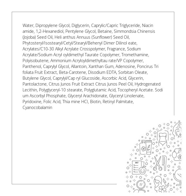 Zaawansowany krem do pielęgnacji skóry, który zapewnia intensywną opiekę dla Twojej cery. Jego unikalna formuła oparta na ekstrakcie z yuja, egzotycznego owocu bogatego w witaminę C i antyoksydanty, sprawia, że skóra odzyskuje blask, witalność i energię. Krem zawiera składniki aktywne, które pomagają wygładzić strukturę skóry i poprawić jej elastyczność. Dzięki temu skóra staje się bardziej jędrna i pełna blasku. Przyczynia się do redukcji przebarwień, minimalizuje występowanie niedoskonałości, a także dobroczynnie wpływa na utrzymanie odpowiedniego poziomu nawilżenia.