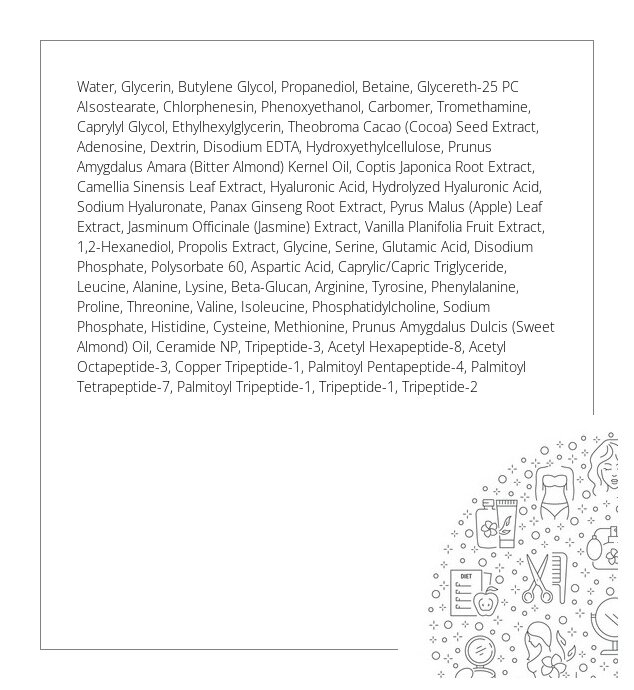 Bogaty tonik do twarzy, który głęboko odżywia i regeneruje skórę dzięki starannie dobranym składnikom aktywnym. Ekstrakt z korzenia żeń-szenia wzmacnia i rewitalizuje skórę, wspierając jej naturalną elastyczność i promienny wygląd. Propolis działa kojąco, regenerująco oraz antybakteryjnie, podczas gdy adenozyna skutecznie redukuje widoczność drobnych linii i zmarszczek. Tonik został wzbogacony o kompleks peptydów, które wspomagają procesy regeneracyjne i ujędrniają skórę, nadając jej zdrowy, młodszy wygląd. Dodatek kwasu hialuronowego w różnych formach intensywnie nawilża, poprawiając strukturę skóry i przywracając jej optymalną gładkość. Tonik idealnie sprawdzi się w pielęgnacji skóry dojrzałej, zmęczonej oraz wymagającej odżywienia i regeneracji.